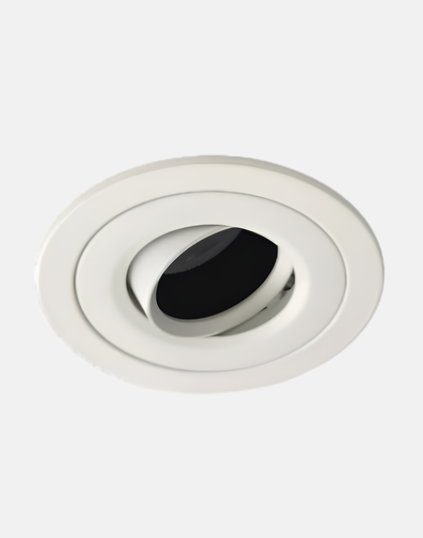El Aster 2 es un embutido redondo móvil de 1 luz con aro antideslumbrante, fabricado con aluminio y en terminaciones blanco mate o negro mate