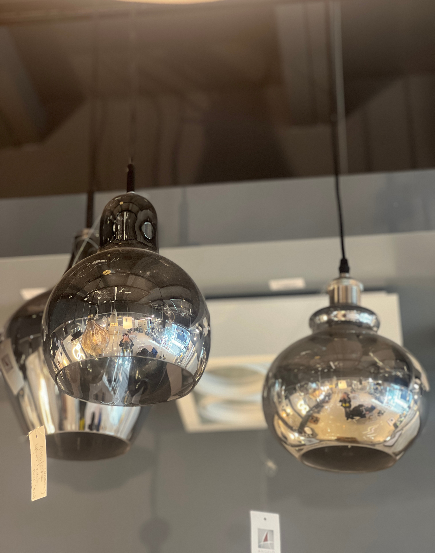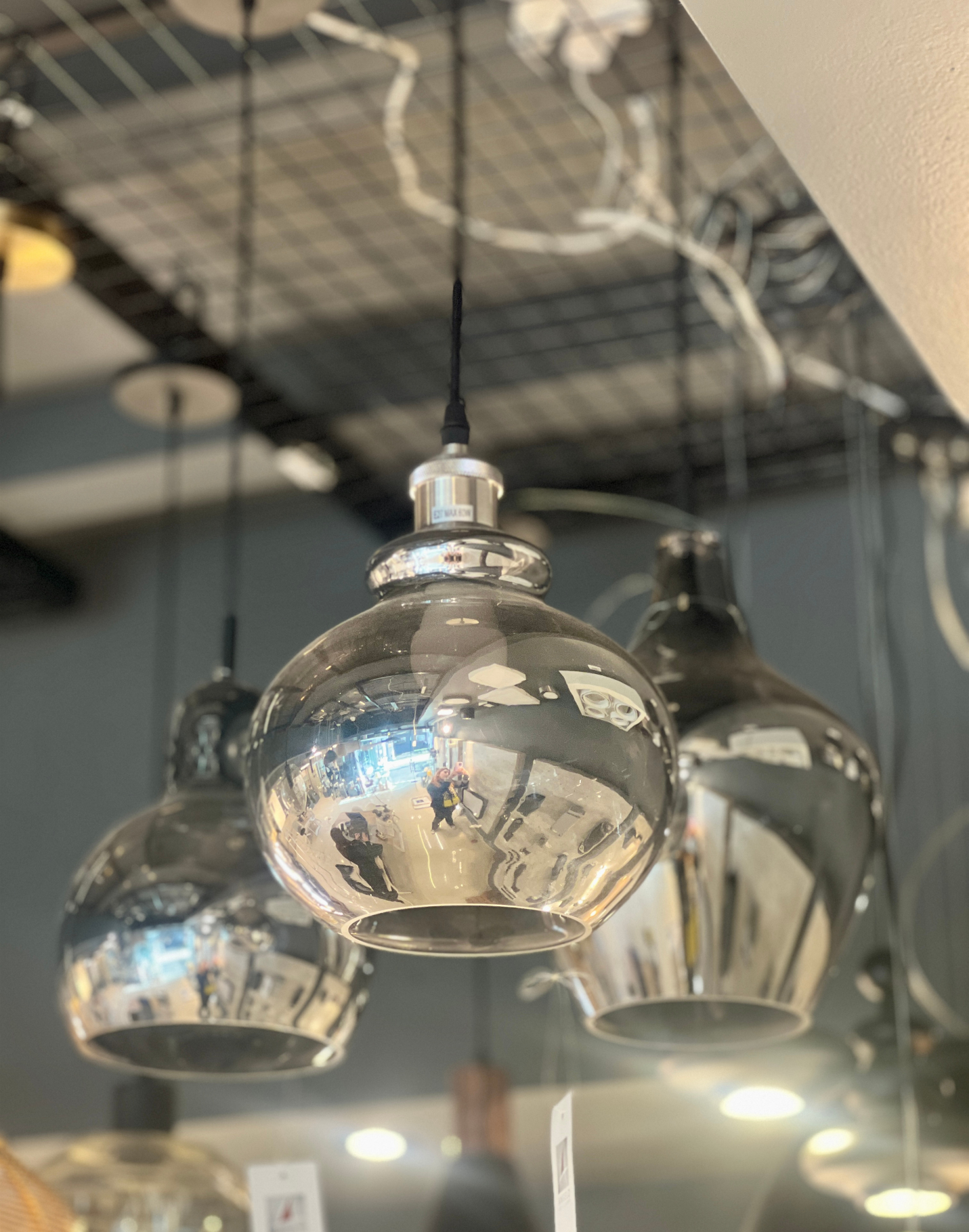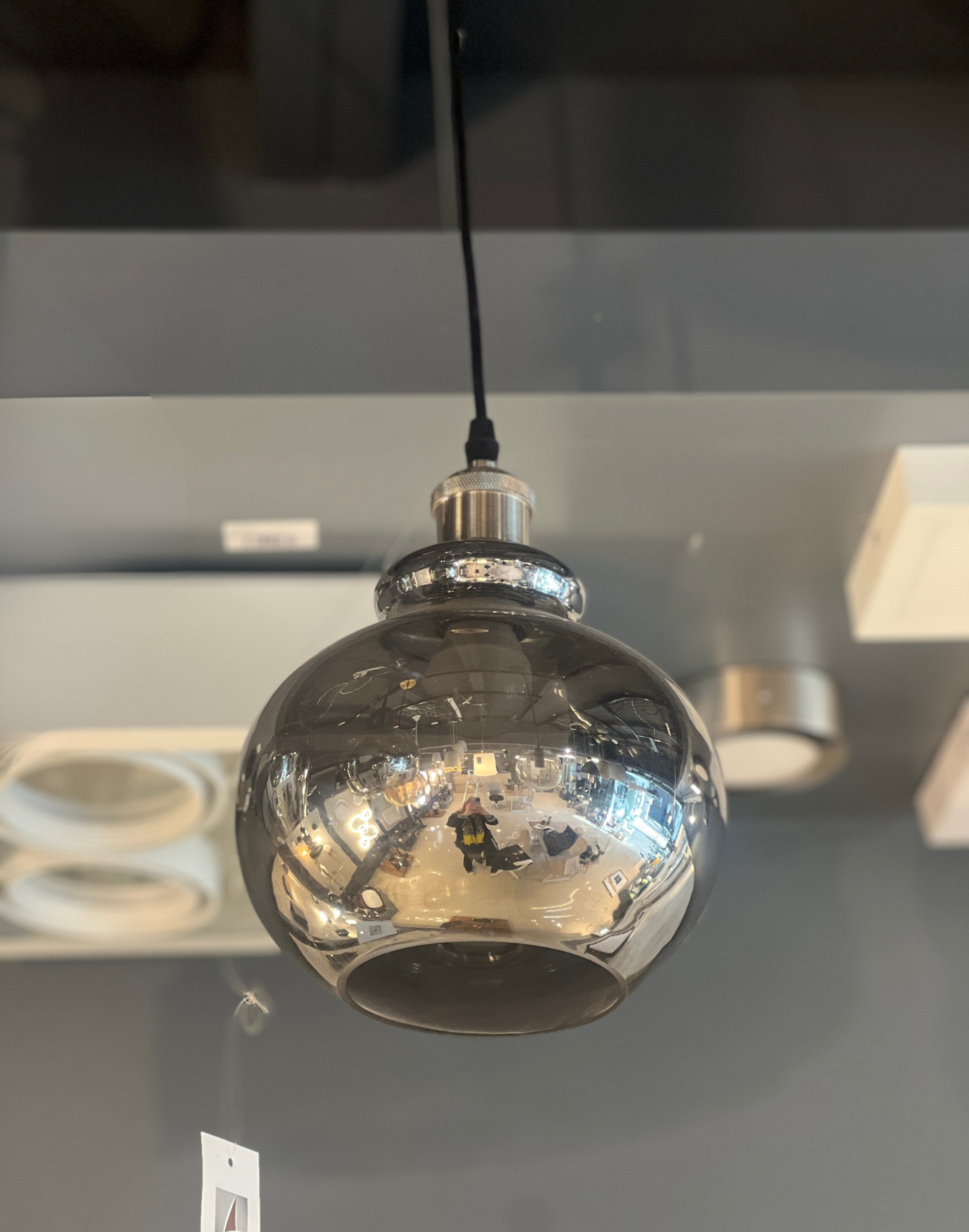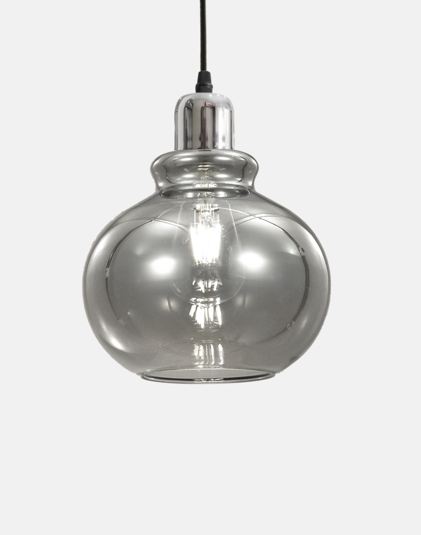 Colgante linea OPHELIA destaca por su diseño retro-vintage con un toque moderno. Su tulipa de vidrio color fumé aporta elegancia y sofisticación a cualquier espacio. Ideal para utilizar de forma individual en dormitorios o rincones de lectura, o combinada en serie sobre barras de cocina.